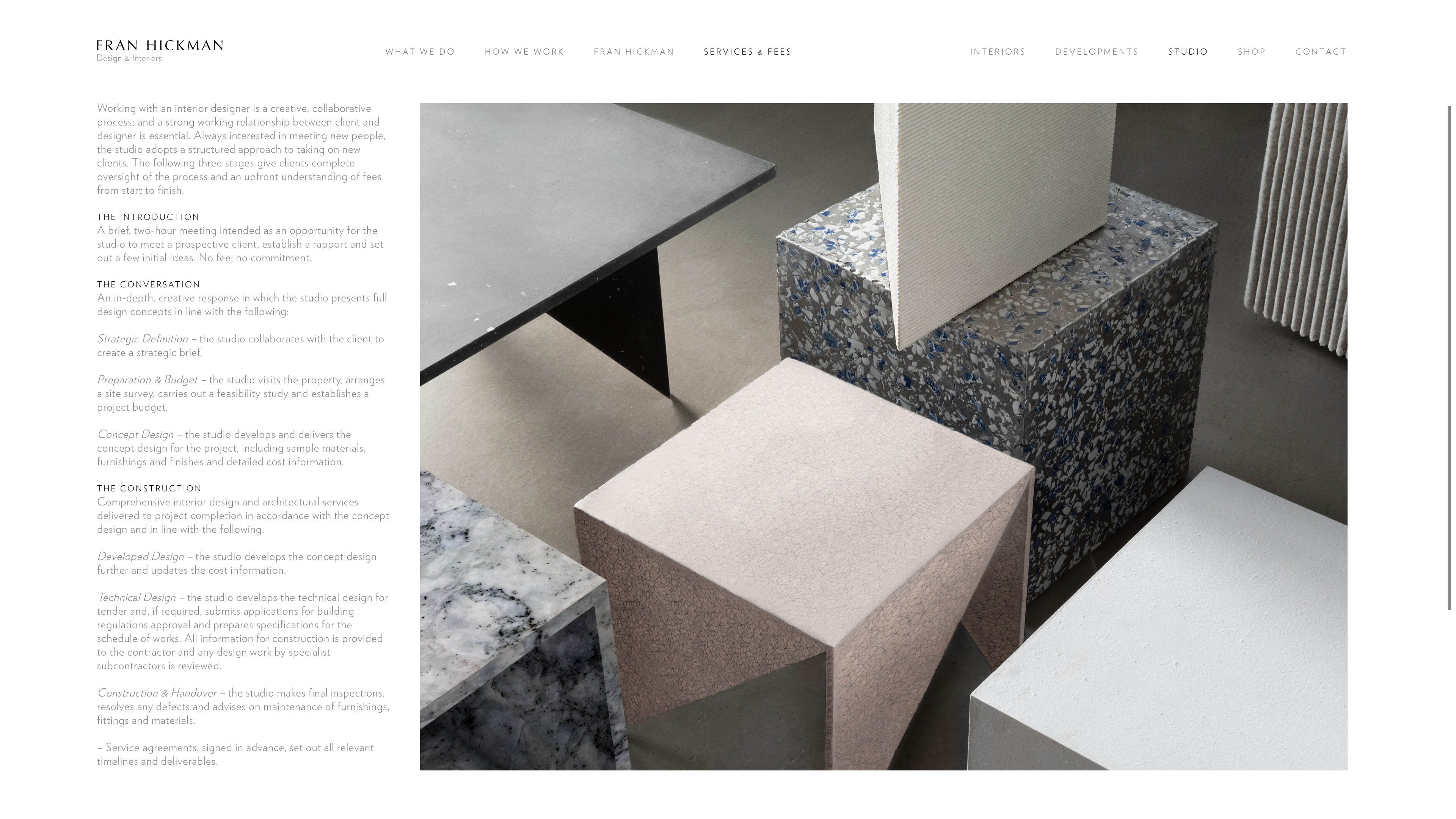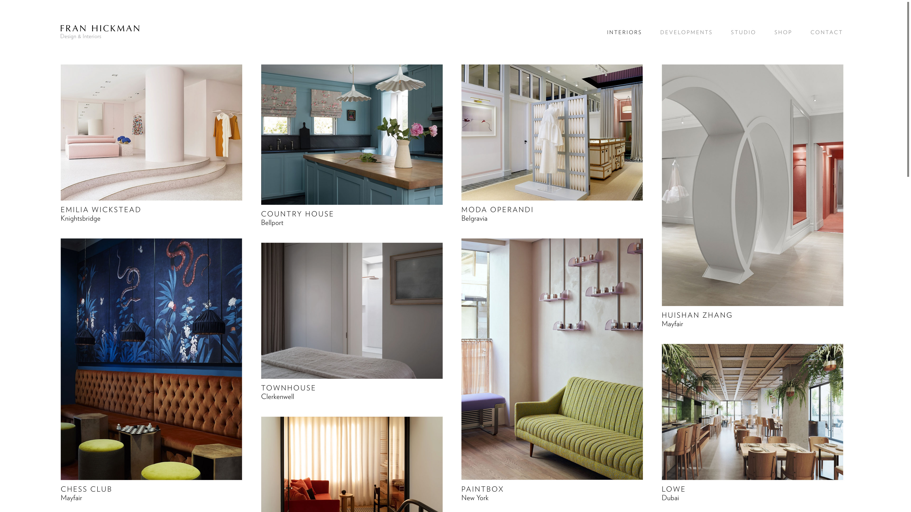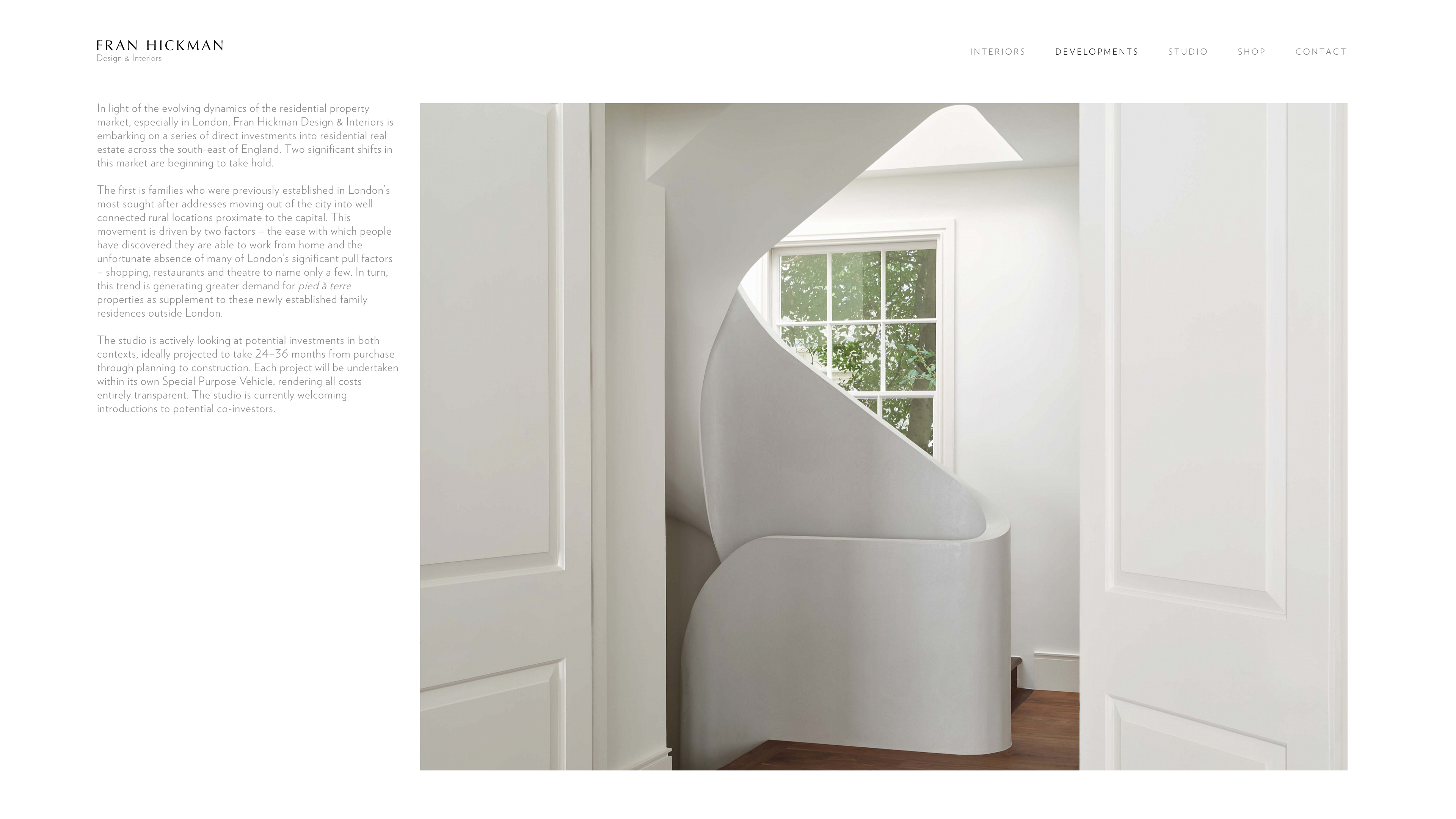 Developed website for Fran Hickman, a London based interior designer.