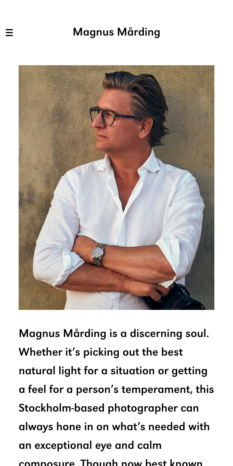After starting his professional career as a fashion photographer, Magnus gained international exposure from working on a run of GQ editorials and ads for the likes of Rolex, Lacoste and Tommy Hilfiger. He now specialises in capturing natural images of his subject, regardless of whether that subject is a person, car, interior, or something else.