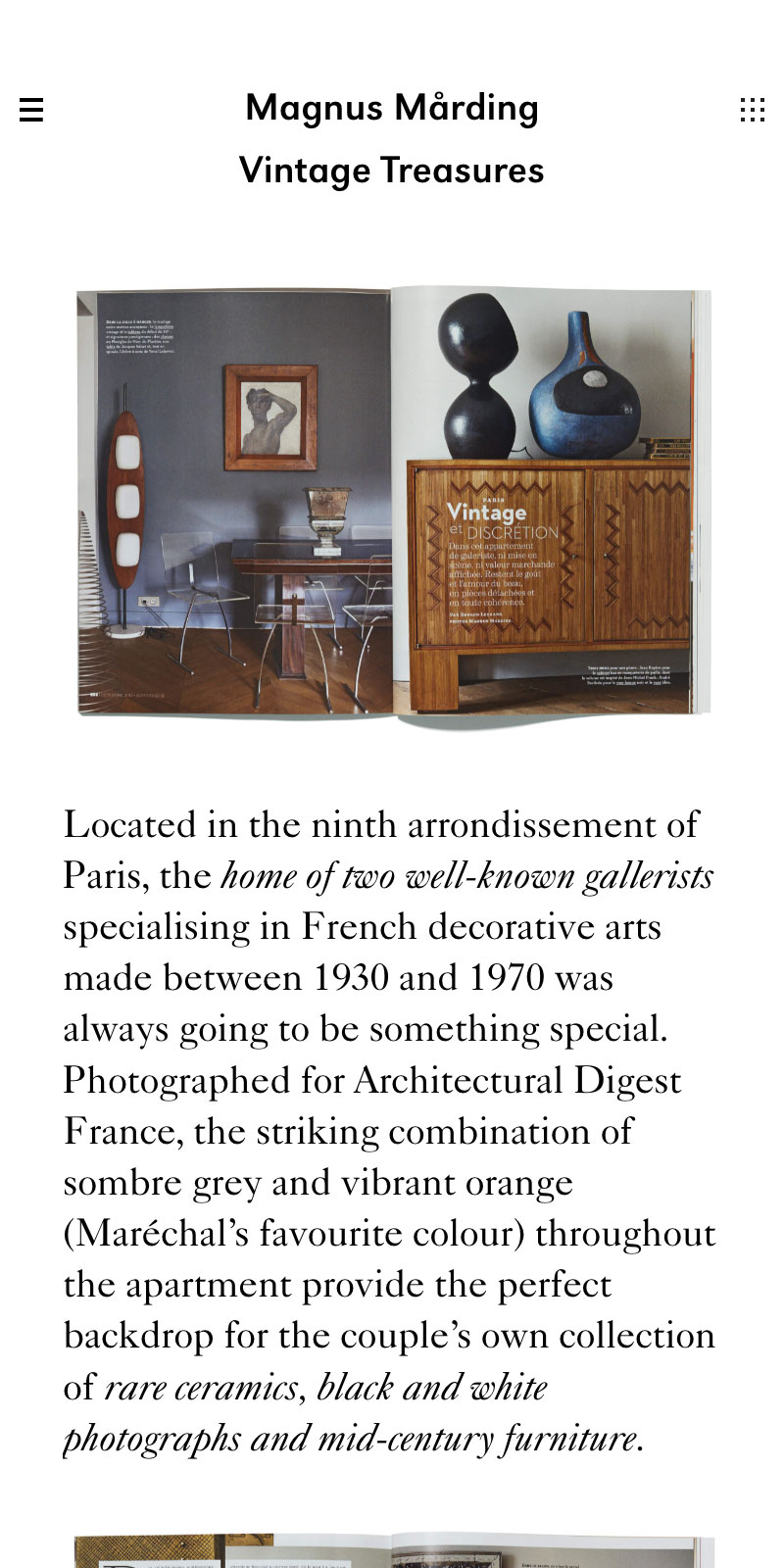 Magnus Marding is a renowned photographer who rose to prominence in the 1990s. Together with C F A Projects, we designed Magnus’s website with the aim of telling a short story to accompany a selection of photos from each of his projects. We were responsible for developing the website, which was done in WordPress.